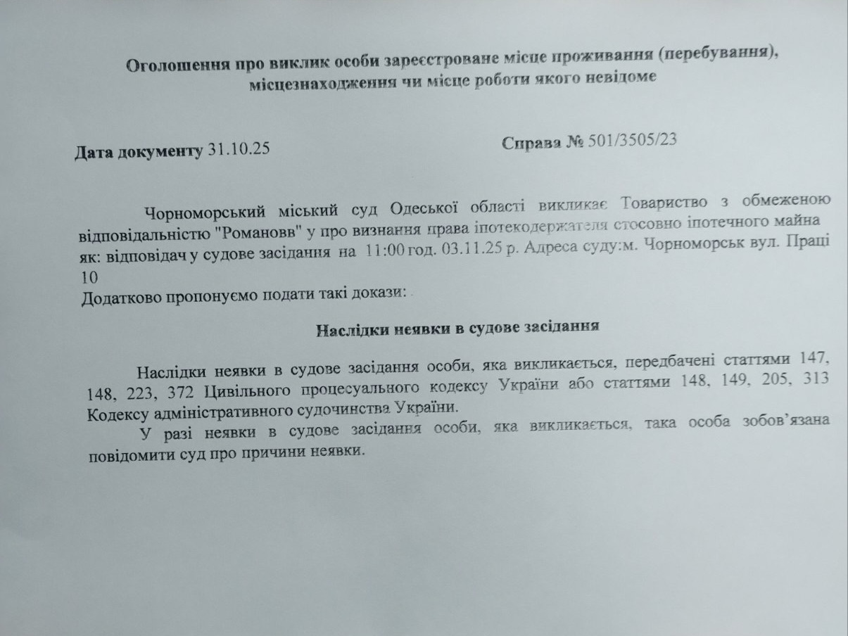 Оголошення про виклик особи місце проживання , місцезнаходження якого невідоме